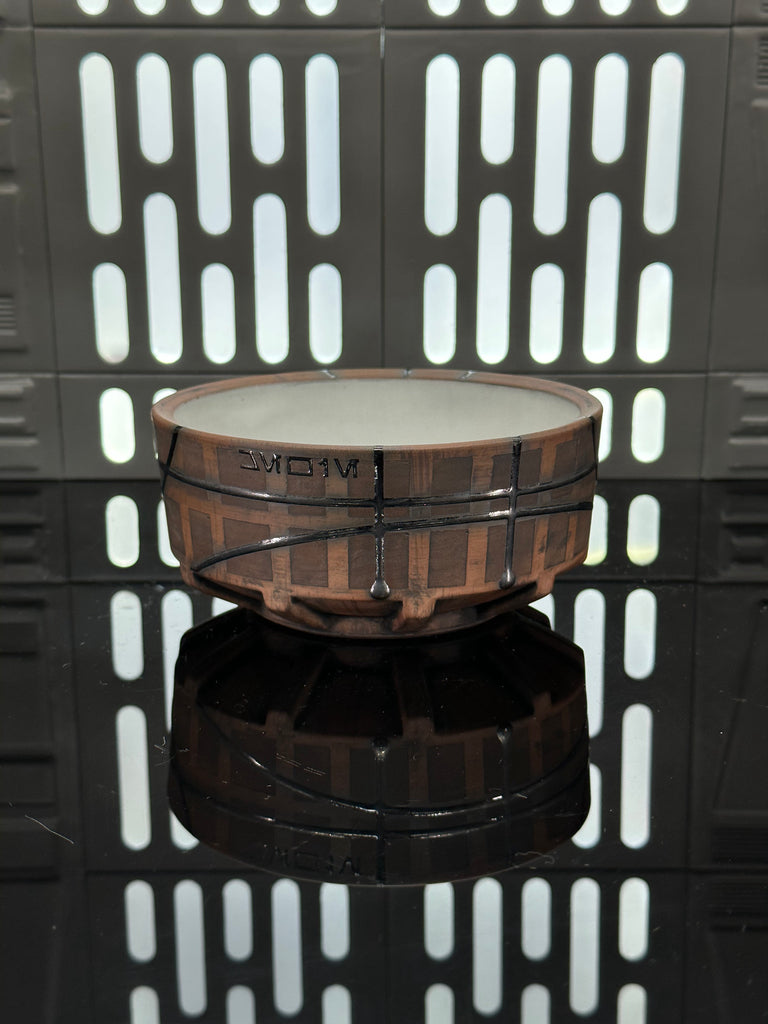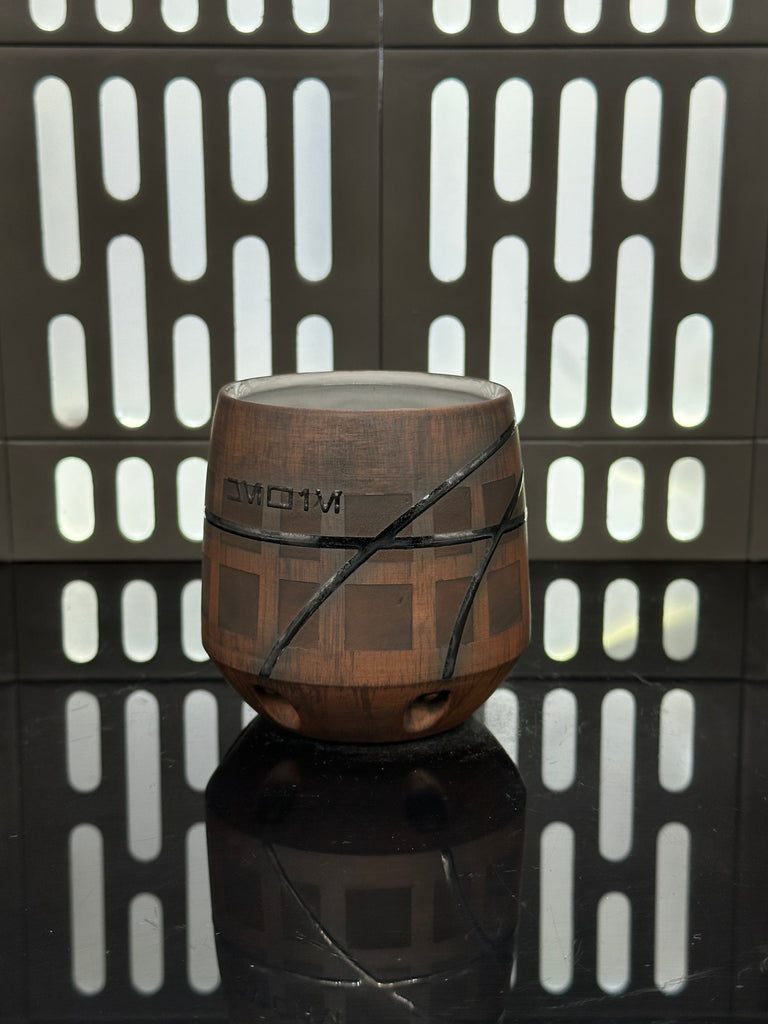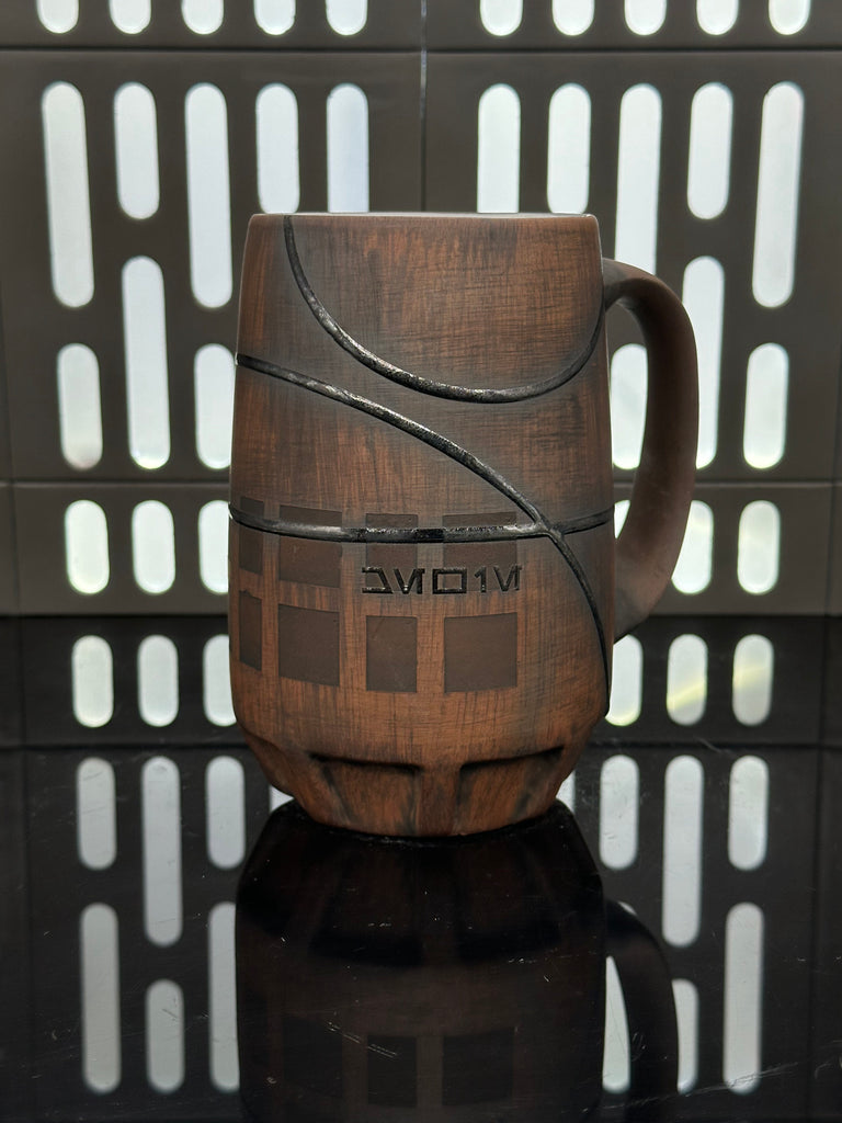 These pieces are inspired by Chewbacca. All pieces will be decorated in brown terra sigillata with a pattern derived from the bandolier he wears. Silver glaze will be used for the lines. The Auebesh text reads Chewie and includes a Rebel Alliance symbol. Each piece is unique and will look similar to the picture but the placement of the pattern, lines, text and signet will change location making each piece unique. You can choose from various forms: Mug, Stein, Rocks Cup, Tumbler, Chili Bowl, Planter, and Serving Bowl.