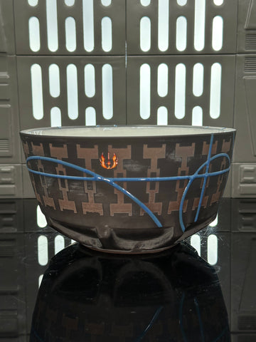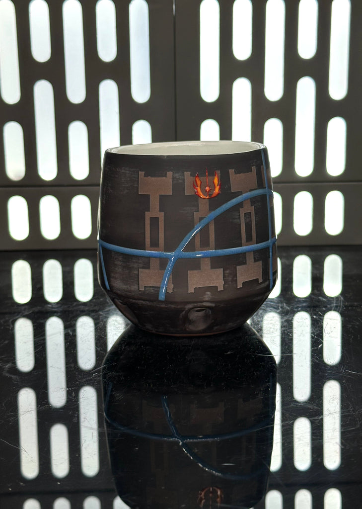 These pieces are inspired by Anakin Skywalker from Revenge of the Sith. All pieces will be decorated in black terra sigillata with a pattern derived from his glove. Blue glaze will be used for the lines. The Aurebesh text reads Anakin and includes a Jedi Order symbol. Each piece is unique and will look similar to the picture but the placement of the pattern, lines, text and signet will change location making each piece unique. You can choose from various forms: Mug, Stein, Rocks Cup, Tumbler, Chili Bowl, Planter, and Serving Bowl.