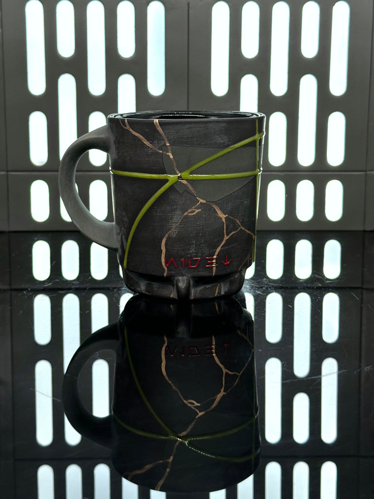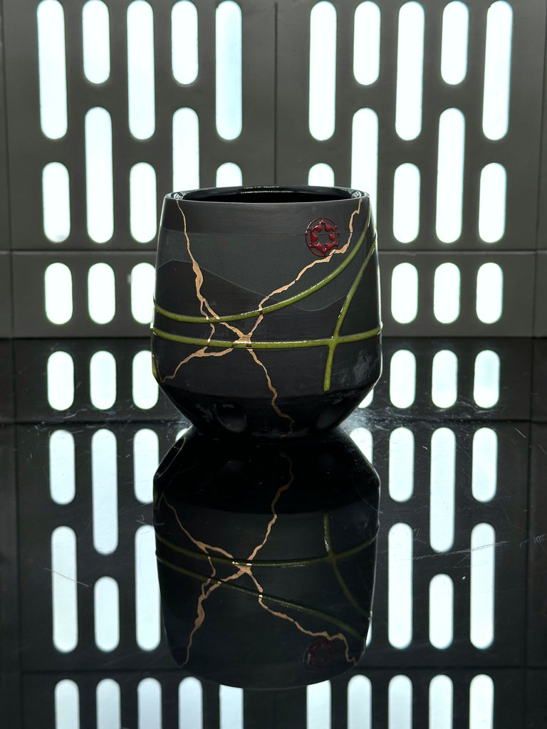 These pieces are inspired by the Night Troopers (Death Troopers) from the Ahsoka Show. All pieces will be decorated in black terra sigillata with a pattern derived from the Visor of the Night Troopers. Green glaze will be used for the lines. The Aurebesh text reads Night and includes a Galactic Empire symbol. Each piece is unique and will look similar to the picture but the placement of the pattern, lines, text and signet will change location making each piece unique. You can choose from various forms: Mug, Stein, Rocks Cup, Tumbler, Americano, Chili Bowl, Planter, Serving Bowl, and Dinner Plate.