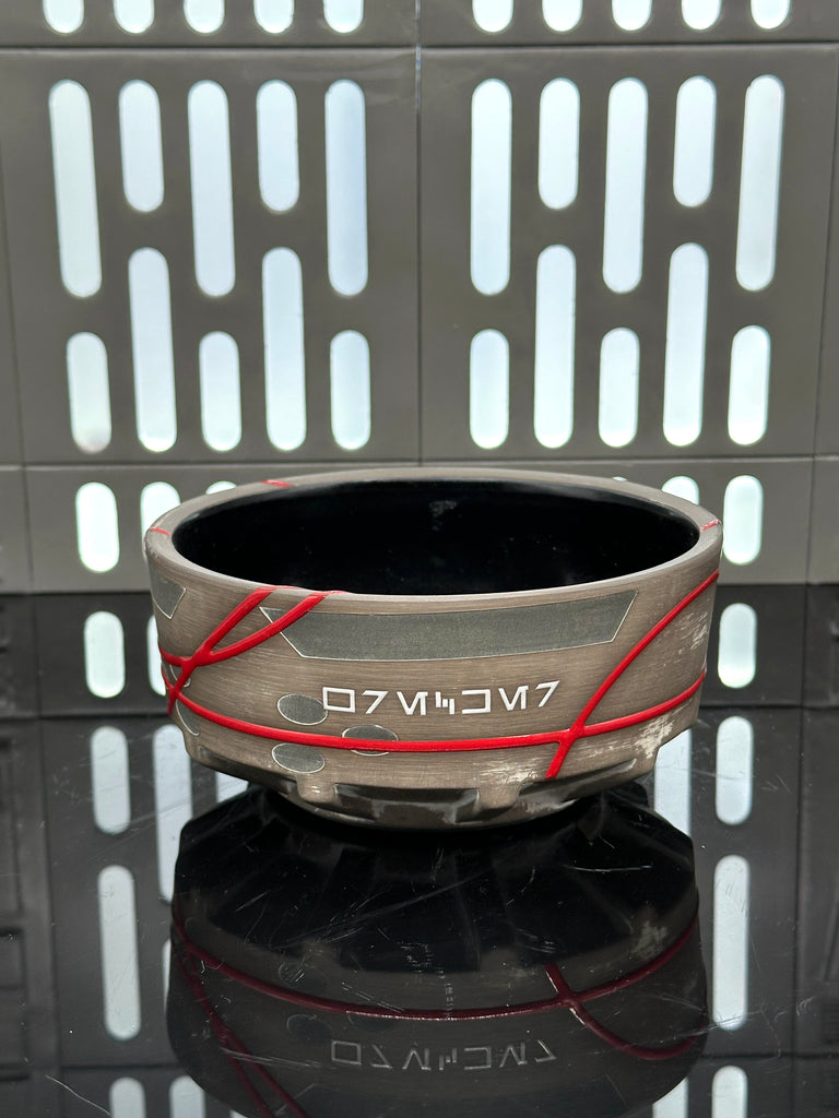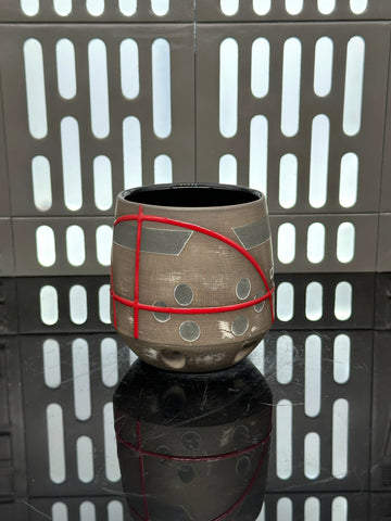 These pieces are inspired by Wrecker of the Bad Batch. All pieces will be decorated in dark grey terra sigillata with a pattern derived from the visor of his helmet. Red glaze will be used for the lines. The Aurebesh text reads Wrecker and includes a Clone for 99 symbol. Each piece is unique and will look similar to the picture but the placement of the pattern, lines, text and signet will change location making each piece unique. You can choose from various forms: Mug, Stein, Rocks Cup, Tumbler, Chili Bowl, Planter, and Serving Bowl.
