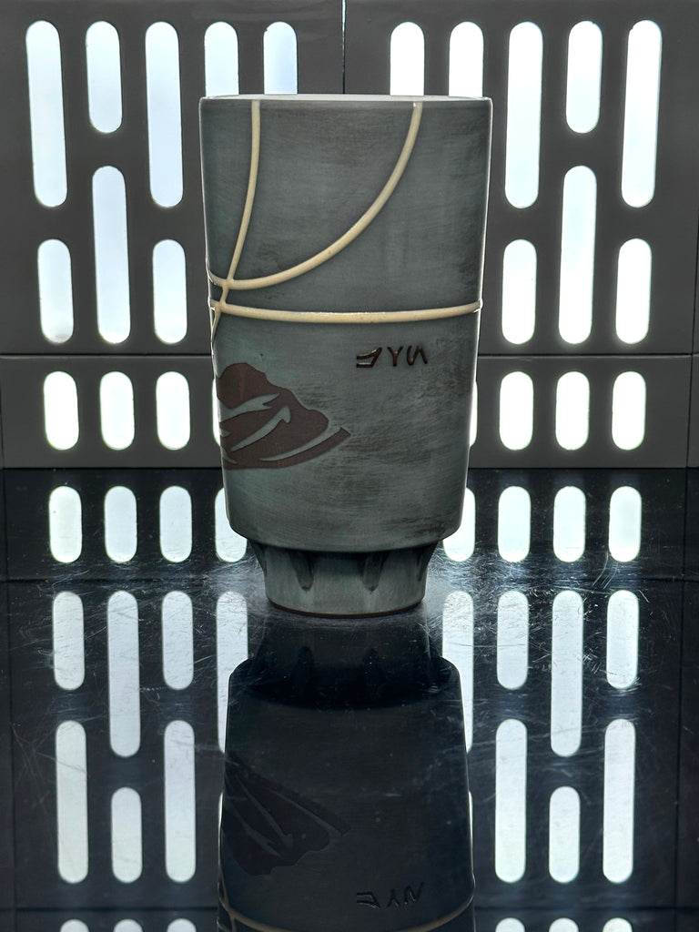 Enjoy your favorite beer or cold beverage in this tumbler inspired by the Star Wars character Jyn Erso. The aurebesh text reads Jyn and has a Rebel Alliance signet.