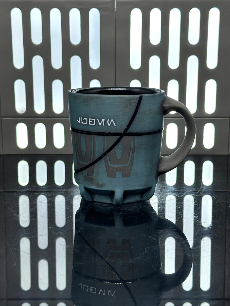 Enjoy your favorite coffee or tea in this mug inspired by the Star Wars character Luthen Rael. The Aurebesh text reads Luthen and has an Andor signet by the handle.