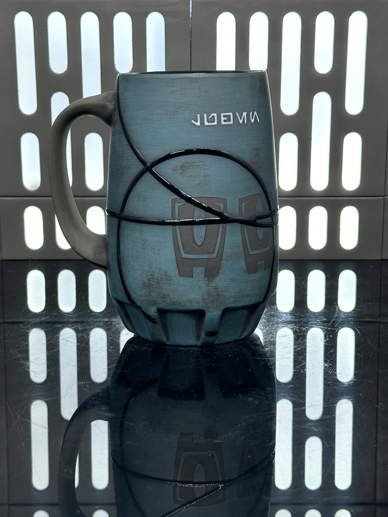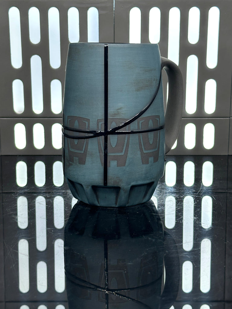 Enjoy your favorite beer in this stein inspired by the Star Wars character Luthen Rael. The Aurebesh text reads Luthen and has an Andor signet by the handle.