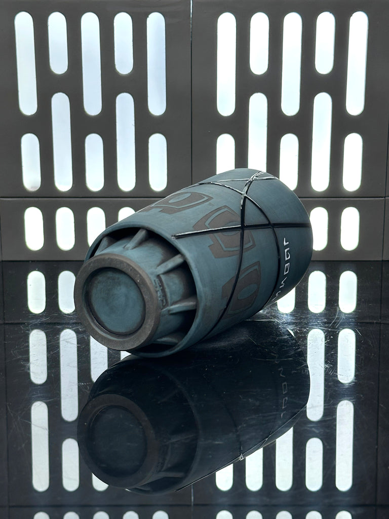 Enjoy your favorite beer or cold beverage in this tumbler inspired by the Star Wars character Luthen Rael. The aurebesh text reads Luthen and has an Andor signet by the handle.