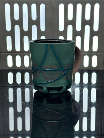 Enjoy your favorite coffee or tea in this mug inspired by the Star Wars character Saw Gerrera. The Aurebesh text reads Saw and has Saw's Militia signet by the handle.